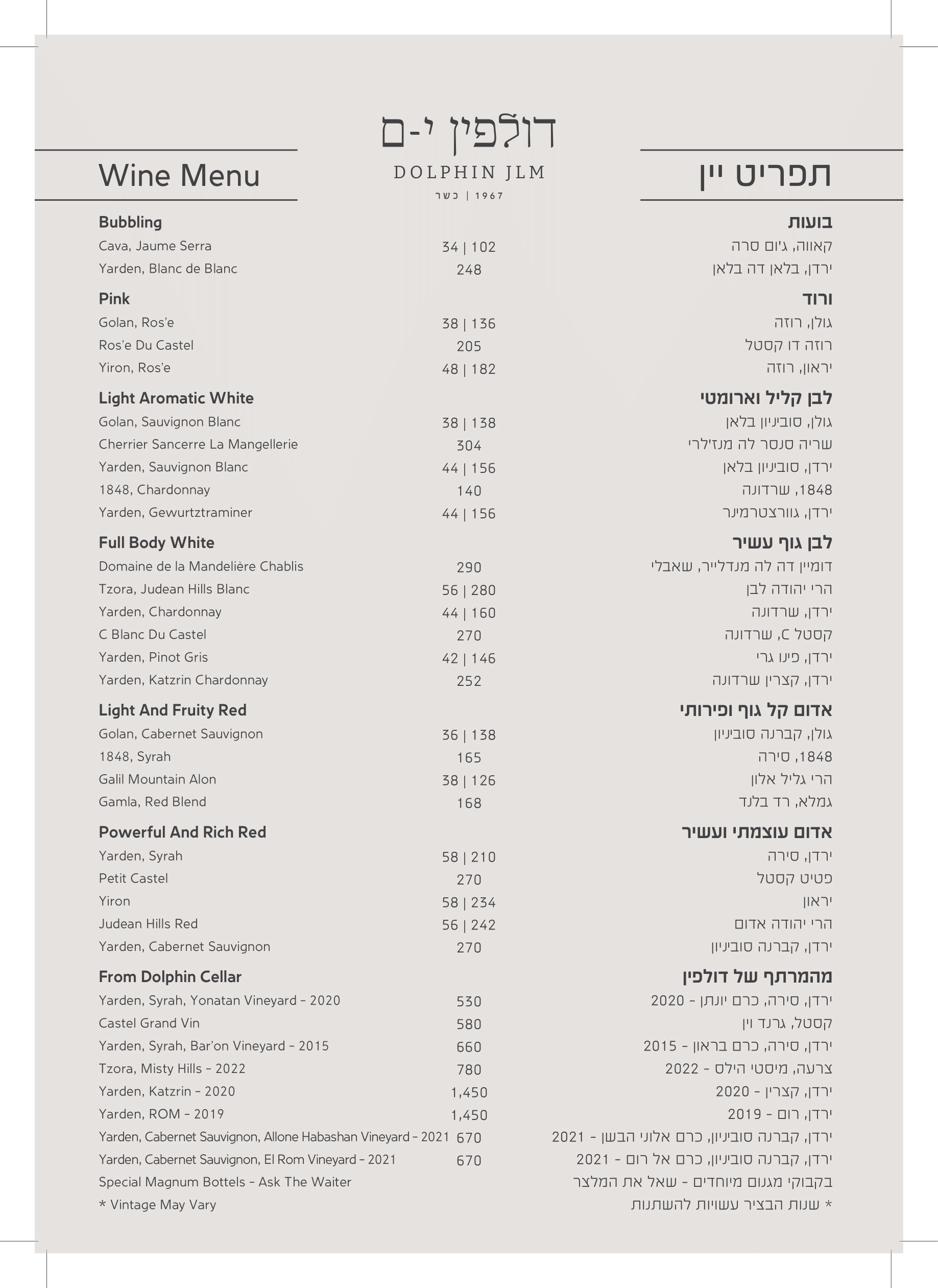תפריט יין