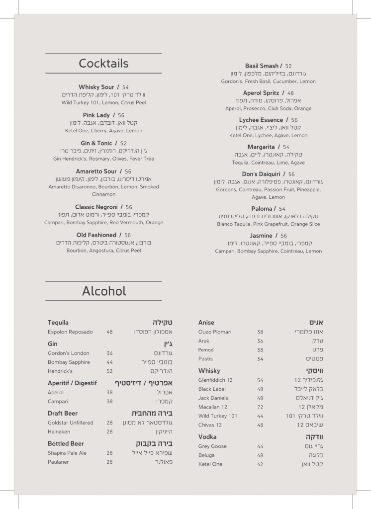 תפריט המסעדה